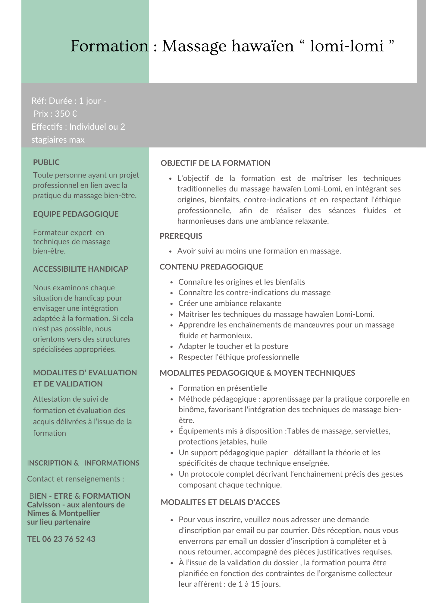 👉 Tarif : 350 € la journée de formation massage