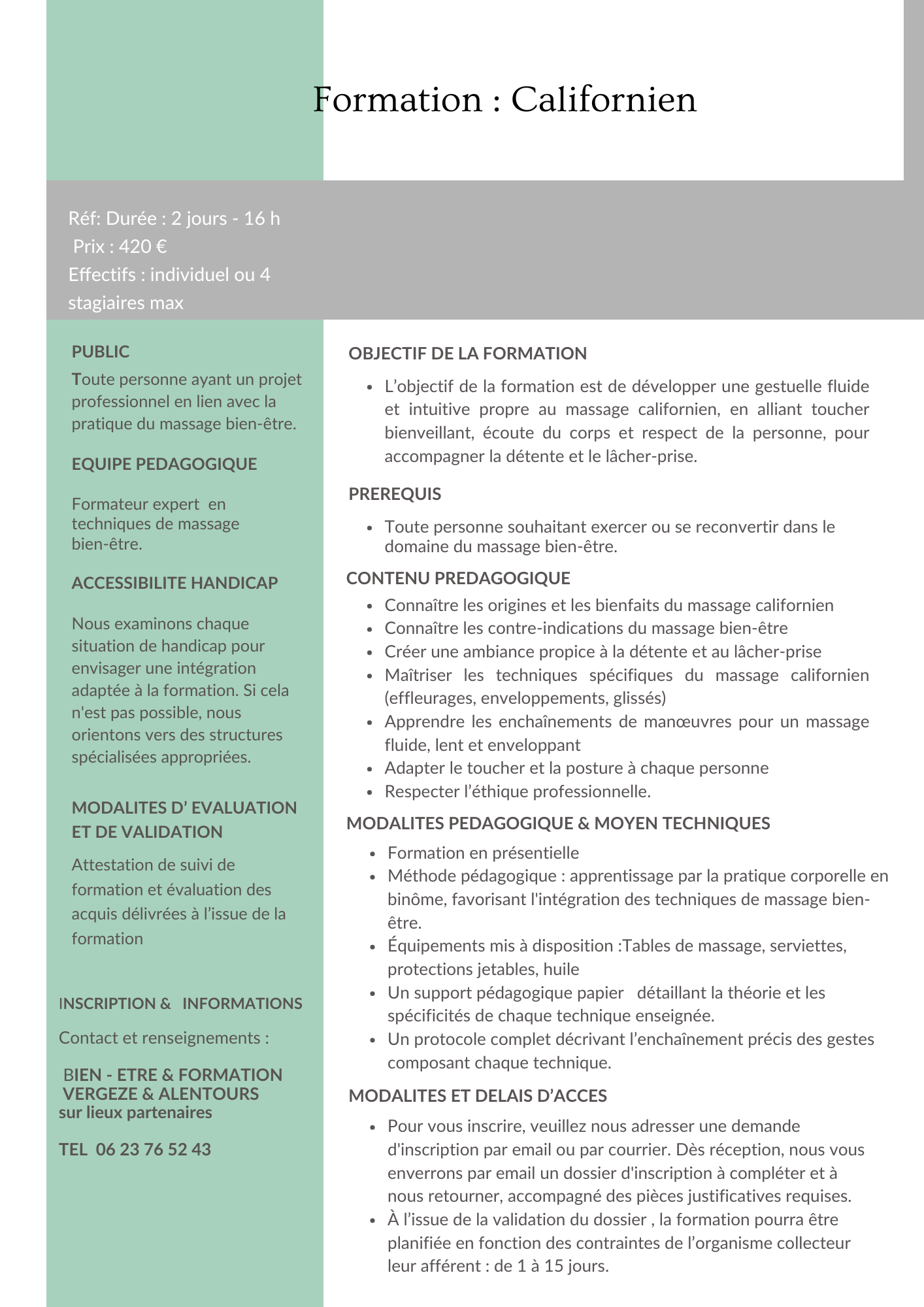 Offrez à vos clients une expérience unique de relaxation et de bien-être, en intégrant le massage californien à votre pratique professionnelle.